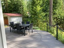 - Iso terassi kahdella puolella, josta osa katettu.