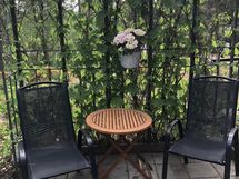 Alaterassin jatkaminen (kivilaatat, humala/villiviiniteline)