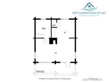 - Asuintiloihin 60 m² on laskettu huone, ruokailutila keittiösyvennyksellä, makuuhuone ja wc. Terassi
