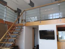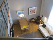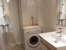 Huoneisto on kahdessa kerroksessa; Ensimmäinen kerros: Keittiö, OH, MH parisängyllä, sauna, pesuhuone(Pyykinpesukone), erillinen Wc. Toinen kerros MH parisangyllä, Wc, Vh, oleskelu ja työtila, jossa on mm TV ja tietokone.