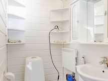 Kakri wc:tä, saunalla pesuhuone. Lattia: WC:ssä muovimatto, saunalla laatta