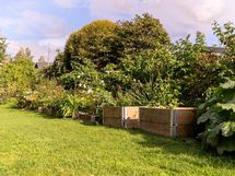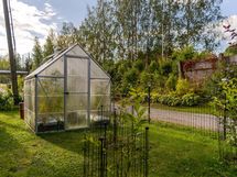 - Nurmikkopintainen, marjapensaista, istutuslaatikoita, koko alue aidattu verkkoaidalla
