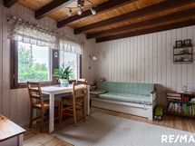 - Mökki voidaan myydä kalustettuna: tuvan ruokapöytä, tuolit, tv-taso sekä levitettävä puusohva. Kuistin ruokapöytä ja tuolit. Yläkerran sängyt.