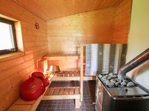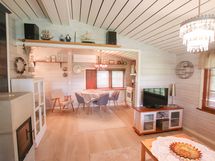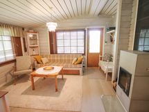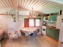 - Keittiön varusteet: Jääkaappi, uuni, liesi, liesituuletin ja mikroaaltouuni. Liesi: Valurautaliesi. Työtason materiaali: Laminaatti.
