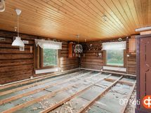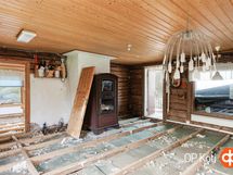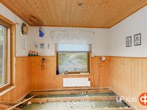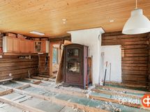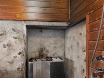 Sauna: Lattia betoni, seinät paneeli. Asuinhuoneet: Lattia purettu, seinät hirsi.
