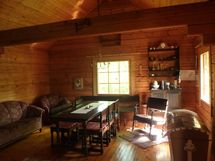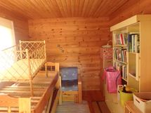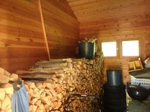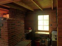 Työtasot: puu. Seinät hirttä.