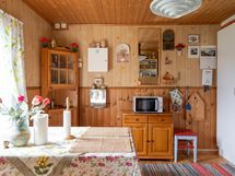 Keittiössä vaatimaton varustus. Tontilla sijaitsee myös maakellari, jossa ruoat ja juomat pysyvät viileinä kesähelteillä. Sähkölämmitys kiinteillä sähköpattereilla sekä lisäksi olohuoneessa pönttöuuni.