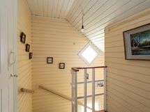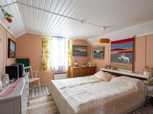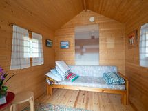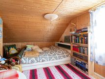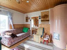 Saunassa puulämmitteinen kiuas jossa vesisäiliö. Vierasaitta toimii mainiosti vierasmajoitustilana.