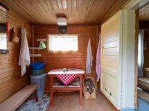 Sauna, puukiuas, erillinen wc puucee.