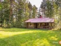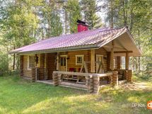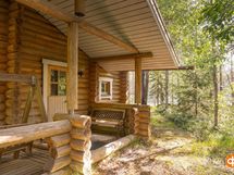 Suojaisassa paikassa, lammen rannalla sijaitsee tämä rauhan tyyssija. Tämä hirsirakenteinen, sähköistetty mökki on erähenkisen arjen pakenijan unelma.