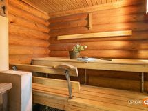 - Sauna, puukiuas, kylpyhuone, peilikaappi.