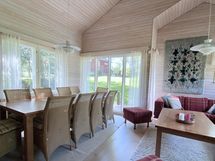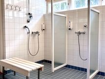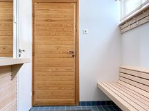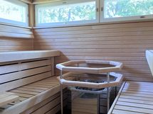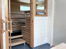 Sauna, sähkökiuas, kylpyhuone, erillinen wc x 4, suihku x 4, lattialämmitys rantasaunan pesuhuoneessa.