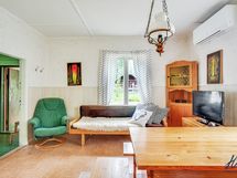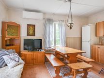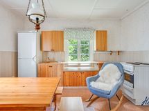 Keittiön varusteet: Jääkaappipakastin, liesi ja uuni. Liesi: Valurautaliesi.