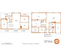 Keittiö: laatta, maali, paneeli. Olohuone: laminaatti, tapetti, paneeli. Makuuhuone 1: ponttilauta, tapetti, paneeli. Makuuhuone 2: ponttilauta, tapetti, paneeli. Makuuhuone 3: ponttilauta, paneeli, paneeli. Kodinhoitohuone: laatta, levy, paneeli. Sauna: laatta, paneeli/laatta, paneeli. Kylpyhuone: laatta, laatta, paneeli. Eteinen: laminaatti, paneeli, paneeli. Wc: laatta, laatta, paneeli. Yläkerran aula: ponttilauta, paneelii, paneeli. Tupa: laminaatti, paneeli, paneeli.
