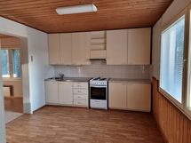 - Sähköliesi, Liesituuletin, Jenkkikaappi, Tilaa isolle ruokapöydälle, Paljon kaappitilaa, Paljon työskentelytilaa, Suuri tiskipöytä, Terästasot, Laminaattitasot.