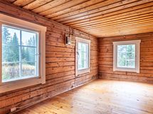 Tupakeittiö: Lautalattia, hirsiseinät. Makuuhuone: Lautalattia, hirsiseinät.