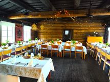 Juhlasali/pirtti 8,45x8,60+tarjoilusali+keittiö+tilava terassi+apukeittiö+sauna+oleskelutila+80 m2 asuinhuoneisto + erillinen aittarakennus jossa majoitustilat (5huoneistoa+ns.huoltoaitta)+grillikota+riihi+varastorakennus
