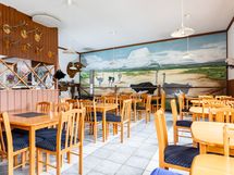 Kahvila: Puurakenteinen, asiakaspaikkoja sisällä 50 sekä terassilla 30, Keittiötila jossa nykyaikaiset keittiökoneet. Kahvilassa2 asiakas wc:tä, Lämmitys ilmalämpöpumpulla. Yhteensä 120m2. rak.v. 2002