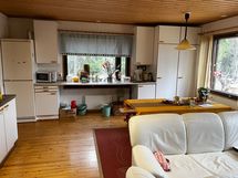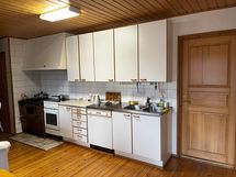 Tilaa isolle ruokapöydälle, Laminaattitasot, Astianpesukone, Sähköliesi, Liesi tai uuni erikseen, Jääkaappi
