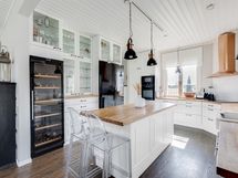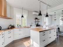 Talo remontoitu Suunnittelupalvelu Jenniferin vahvaa tyylisilmää apuna käyttäen ja rauhaisa kartanomainen tunnelma kulkee läpi talon. Remontin yhteydessä mm. kaikki sisäkatot maalattu, seinäpinnat tapetoitu tai maalattu. Keittiö uusittu kokonaan ja siellä mm. iso saareke, Festivon pariovellinen jääkaappi sekä erillinen viinikaappi. Alakerrassa jalalle pehmeä vinyylikorkkilattia, joka kestää myös lasten ja eläinten roiskeita. Yläkerrassa valoisuutta lisää vaalea laminaattilattia. Isossa saunassa hetivalmis kiuas, jonne on kiva mennä lämmittelemään tallihommista tultuasi.