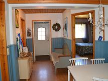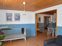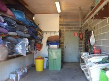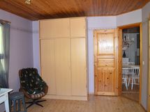 Rakennuksen päädyssä on vuonna 2001 laajennettu siisti ja viihtyisä 77 m2:n asunto. Asunnossa on tilava olohuone, keskellä keittiö ja ruokailutila, kaksi makuuhuonetta, pesuhuone ja sauna, erillis-wc ja vaatehuone. Asunnon vieressä on korkea autokatos kahdelle autolle.