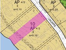 Luovutusrajoitus: Alueella vireillä kaavamuutos. Nykyisen kaavan mukaan 3540 m2 suuruisella AP tontilla on rakennusoikeutta e=10 eli 354 krsm2. Kaavaehdotuksen voimaantullessa tontin kaavamääräys muuttuisi AO:ksi ja rakennusoikeuden määrä tuplaantuisi (e=20). AP= Asuinpientalojen korttelialue, alueella voidaan rakentaa rivitaloja, kytkettyjä pientaloja ja erillisiä pientaloja asumistarkoituksiin. AO= Erillispientalojen korttelialue, alueella voidaan rakentaa yksi- tai kaksiasuntoisia pientaloja (omakotitaloja) asumistarkoituksiin.