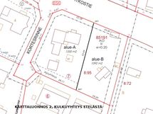 Noin 1092 m² rakennuspaikka + arviolta noin 100 m² yhteinen tieosuus tullaan jakamaan hallinnanjaolla (yhteensä aluetta arviolta noin 1192 m²). Kaupan kohteena on rakennusoikeus 288 k-m², jonka lisäksi 32,8 k-m² rakennusoikeus autotalleja ja varastoja varten.