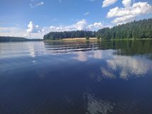 Kallio / soraranta. Ranta sopii sekä isolle veneelle että uimiseen.