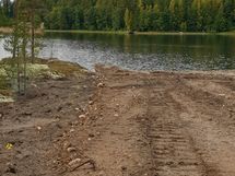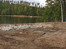 Esirakennettu, tasattu sekä istutettu maapohja. Kiilatut louhepedit rakennukselle sekä rantasaunalle.