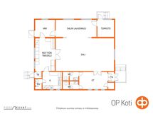 Keittiö: laattalattia, maalatut seinät. Eteinen: laattalattia, maalatut seinät. Wc: laattalattia, maalatut seinät. Sali: parketti/laattalattia, laatoitetut / maalatut seinät.