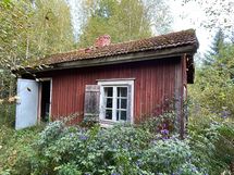 tontilla sijaitsee purkukuntoinen mökki ja peltikontti