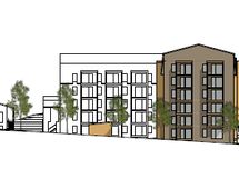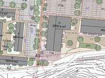 Tontille on hahmoteltu 6600 - 9500 kerrosneliömetrin kokoista asuinrakennusten kokonaisuutta.