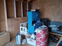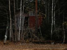Lautamökki missä on remontti kesken. Tupa ja sauna. Ulkohuusi.