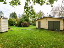 Tasamaa tontti, pääosin nurmella, tontille kolme ajoväylää/liittymää. Tontilla sijaitsevat 1970 rakennettu puurunkoinen ja lautaverhoiltu omakotitalo, joka todettu kuntotarkastuksen yhteydessä purkukuntoiseksi. Lisäksi tontilla talon takana toinen autotalli / varastorakennus.