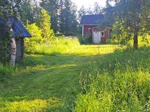Pihassa vanha hirsinen aitta, katto hyvä , hyvä varastona, talo pieni hirsirunkoinen, ei lämmitystä katto ehjä, hyvä rakennusaikainen kahvitupa tai miksi ei pikku ulkopuolen fiksauksella lasten leikkimökki,