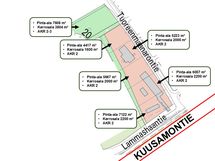 Myydään pienkerrostalotontti 7 608 m2. AKR 3-2. Rakennusoikeus 3 804 k-m2. Tonttikuvaan merkitty nro. 2.