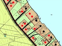 Kaavamerkintä AP-1, pientalovaltainen asuntoalue ranta-alueella. 300 k-m2 + talousrakennuksia 100 k-m2