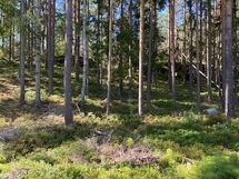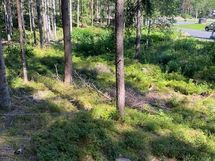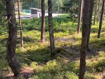 Metsäinen tontti mäen alarinteessä.