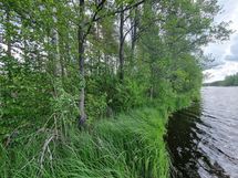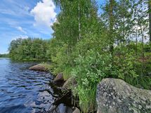 Kovapohjainen jyrkähkösti veteen viettävä ranta.