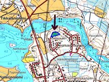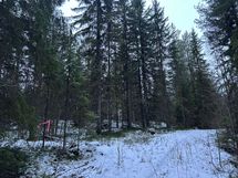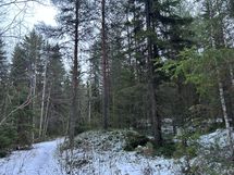 Kallioinen metsätontti rannan läheisyydessä