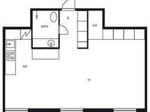 | 27.12.2024 | 1h + avok + kph | 36,0 m² | 770 € / kk | 17 vrk | |