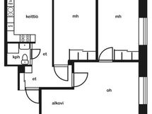 | 30.12.2021 | 1h + k + alkovi | 42,5 m² | 800 € / kk | 2 vrk | |