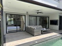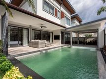 Brand new Pool Villa for Rent in Pattaya city! 2 mins to Soi Baukao 5mins to Central Festival shopping mall 150,000 THB per month. 2 floors, 4 bedrooms, 5 bathrooms, 1 living room, 1 European Kitchen + outdoor Thai kitchen washing machine, Double Parking, Garden, Private Pool Community: Gym, Swimming, Garden, Juristic office, and meeting space. 24 hrs Security gate.Hinta laskettu kurssilla 0,028314.