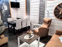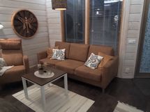 Alakerrassa makuuhuone, tupakeittiö ja luonnonkivitakka. Yläkerrassa toinen makuuhuone sekä avara oleskelutila. Lisäksi asunnossa on oma sauna.