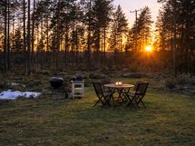 Aamuaurinko paistaa keittiöön sekä vieras-/työhuoneeseen, tehden tiloista valoisat ja miellyttävät. Päivä- ja ilta-aurinko puolestaan valaisee olohuoneen ja piha-alueen, luoden lämpimän ja tunnelmallisen iltafiiliksen.
