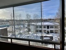 Lisäksi pesutiloissa ja keittokomerossa on vielä ikkuna kolmanteen suuntaan, osake sijaitsee taloyhtiön päädyssä, joten näkyvyyttä on jokaiseen suuntaan.