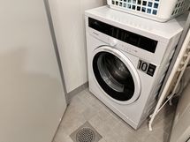 • Pyykinpesukone, joka on tyylikkäästi sijoitettu erilliseen syvennykseen välioven taakse
