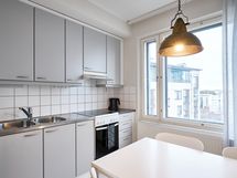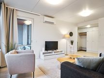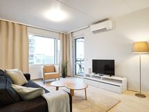 Stylish and bright family apartment on the top floor. This furnished two-bedroom apartment features its own sauna, a glazed balcony, and four comfortable beds, ensuring a pleasant stay and a good night's sleep. The apartment's heat pump provides additional comfort during the hot seasons. The location is unparalleled, as the apartment is situated right next to the Iso Omena shopping center. Here, you will find all the services and recreational opportunities you need just a few steps away. In addition, the area boasts excellent transportation connections to both Espoo and Helsinki. The Western Highway, metro, and several bus lines offer fast and convenient travel options in various directions. This is an excellent opportunity to enjoy high-quality living in a convenient location with a diverse range of amenities.