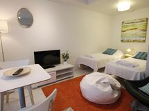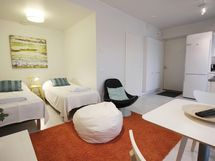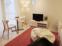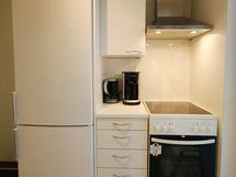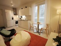 A Superior-level studio apartment for two guests in Muurala, Espoo. This second-floor apartment is in excellent condition and has everything you need for comfortable living. The kitchen is equipped with a refrigerator/freezer, ceramic cooker and dishwasher. The kitchen has stylish light-colored laminate flooring and plenty of storage space. The bathroom has a washing machine, and there is also a private sauna in the apartment. The French balcony faces the inner courtyard. The bus routes around the metropolitan area run right next to the building. Grocery stores and other facilities are within one kilometer from the apartment. Bed linens, fresh towels and Wi-Fi are included in the price.