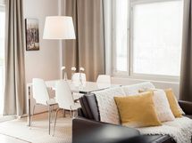 Cosy one-bedroom apartment with convenient location in Leppävaara. The apartment is suitable for both short and longer stays. The apartment is homelike furnished, but the access is keyless and easy due to the code locks. The apartmenyt has a French balcony, but the roof terrace is for the use of the residents. Parking either in front of the house or on the street. There are plenty of services within a few blocks and the Sello shopping centre with its wide range of services is only a few minutes' walk by Leppävaara train station. From the station you can easily get around by bus within Espoo, the train to Helsinki city centre takes less than 15 minutes at the fastest, and you can take the express train to both Espoo and East Helsinki. The main roads Kehä 1, Länsiväylä and Turku highway are just a few minutes' drive away.